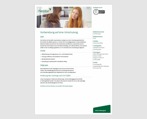 Produktblatt »Vorbereitung auf eine Umschulung«