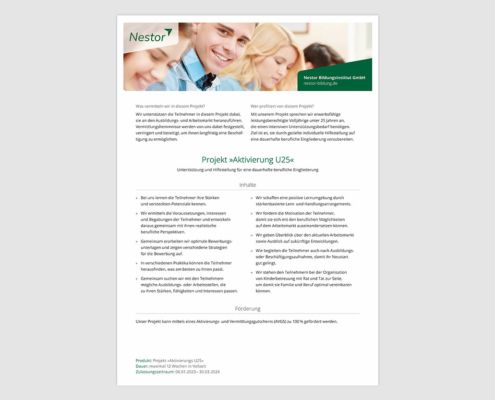 Produktblatt »Projekt Aktivierung U25«