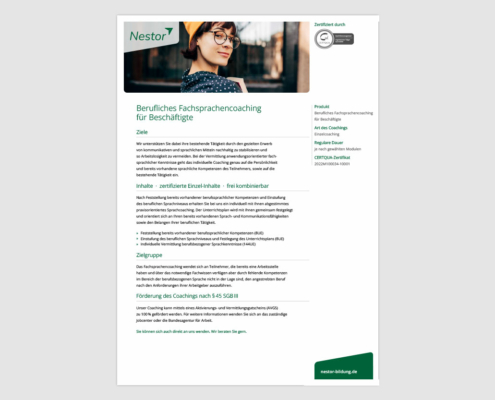 Produktblatt »Fachsprachencoaching für Beschäftigte«